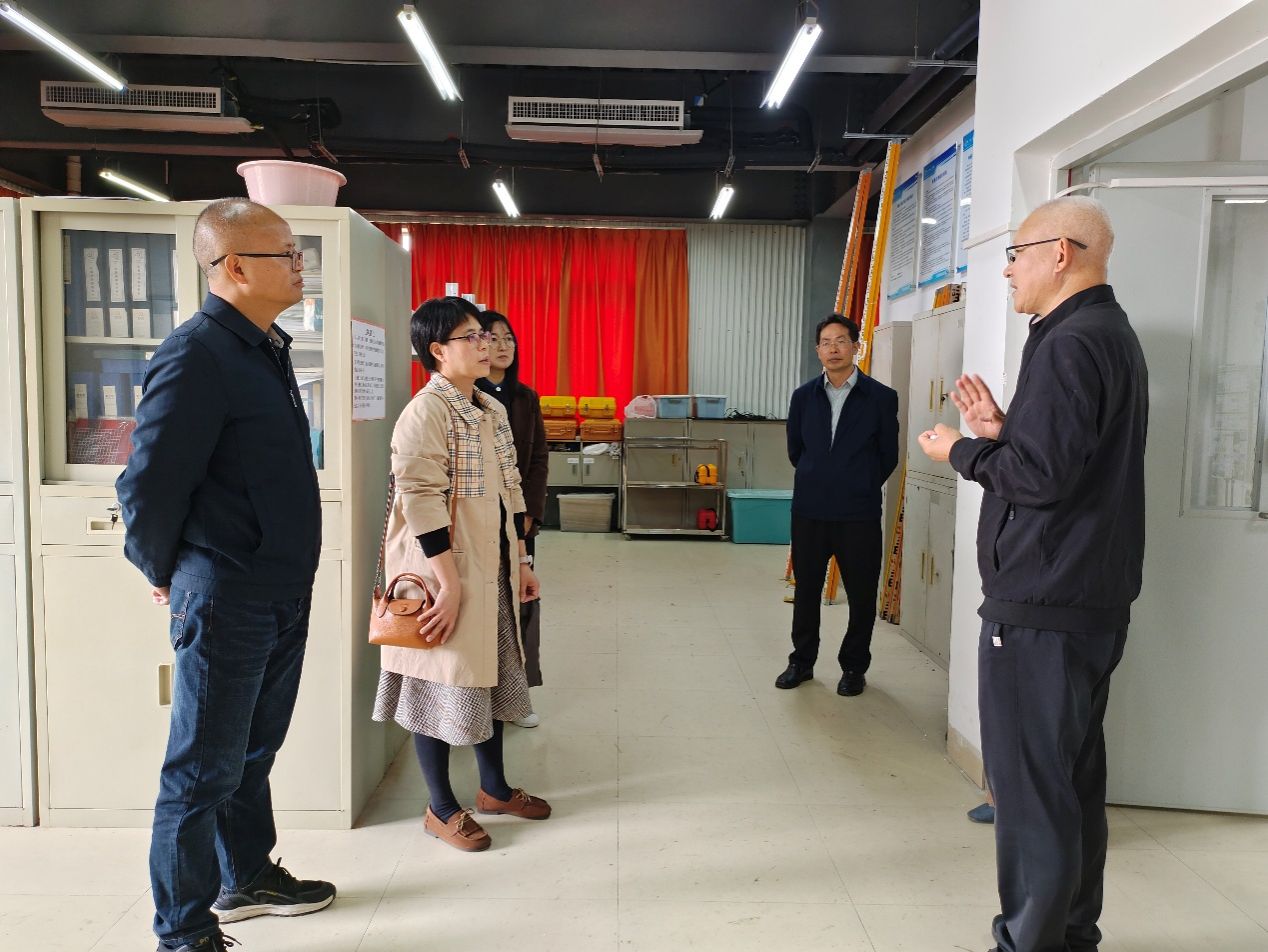 座谈会后,在相关负责人的陪同下,调研团队实地参观了城乡建设学院的测量仪器室、创作实验室、数字技术实验室等特色教学与科研场所。高级实验师谭光营详细介绍了各类仪器设备的功能及其在教学实践中的应用情况。