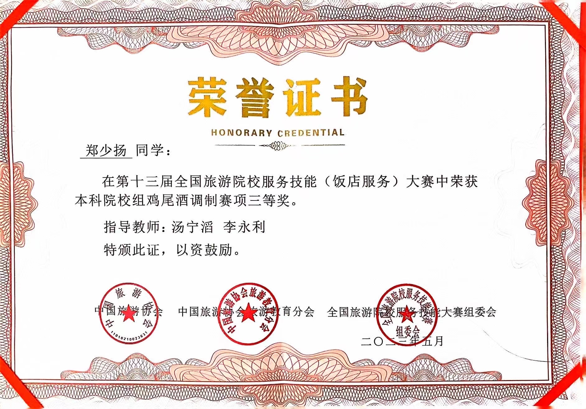 5月11日-13日,由中国旅游协会旅游教育分会主办的“云驴通杯”第十三届全国旅游院校服务技能(饭店服务)大赛在山东青岛举行。经过为期3天的激烈角逐,我校旅游与地理学院学生邓海梅和郑少扬分别喜获本科院校组中式铺床赛项三等奖和本科院校组鸡尾酒调制赛项三等奖。