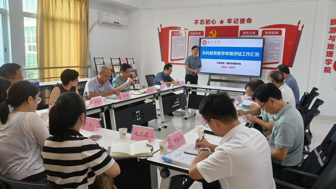 旅游与地理学院副院长(主持行政工作)李航飞汇报了学院概况、自评工作开展、自评结果等情况,并重点讲解了围绕高水平应用型大学建设的人才培养思路与措施、质量保障系建设、人才培养质量保障情况以及学院审核评估专项检查整改情况。与会人员就审核评估工作进行了深入的研讨,检查组对学院审核评估工作提出了的宝贵意见和建议。