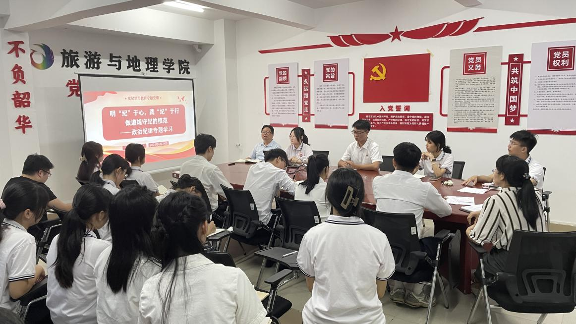 2024年6月24日下午,我院党委在紫荆B-C连廊二楼党员活动室举办“明‘纪’于身,践‘纪’于行,做遵规守纪的模范——政治纪律专题学习”的党课。本次党课由旅游与地理学院党委书记曾裕华同志主讲。