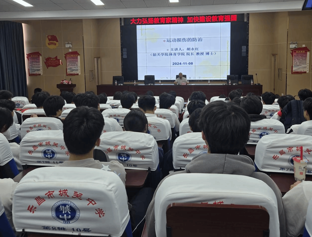为落实纵向帮扶韶关市县域普通高中质量提升工作,回应县中的实际需求,我院邀请了韶关学院体育学院院长胡永红教授在11月8日分别前往乐昌市第二中学和乐昌市城关中学进行体育训练工作指导。胡永红教授在分别在两所学校面向体育老师和体育特长生进行了现场授课,授课主题是“运动损伤的防治”,主要内容包括:常见运动损伤的类型,常见运动项目的损伤风险,中小学生运动损伤的原因,运动损伤的预防、检查与治疗,常见运动损伤及治疗图解,功能训练——一种防止运动损伤的新方法和主动防治伤病——运动拉伸放松等七个方面。胡教授的授课契合学生实际、讲解生动形象、现场动作示范、与学生密切互动,授课效果很好,受到两所学校的领导、老师和学生高度赞扬。