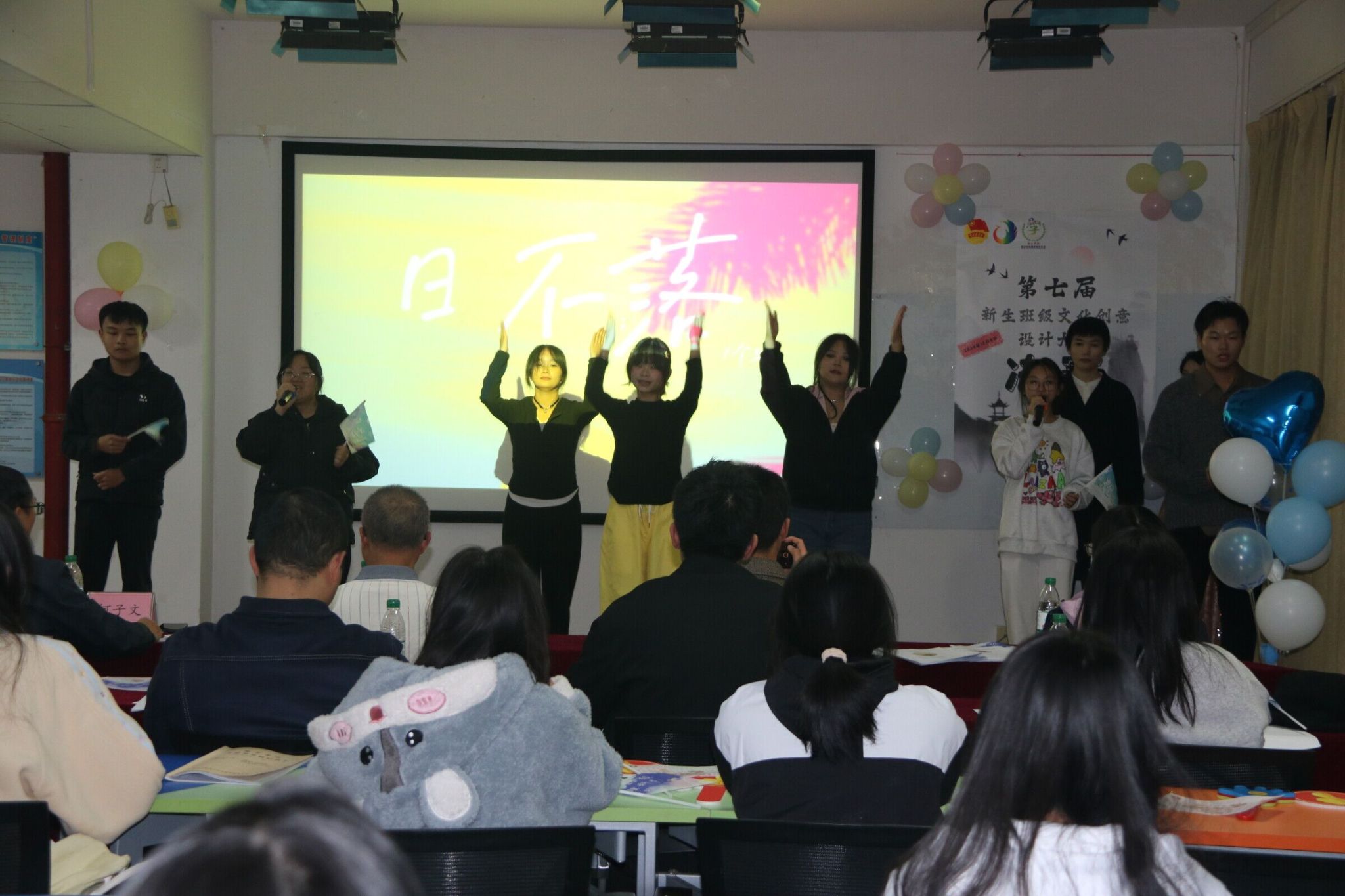 永远值得珍惜的,是长成青年形状的理想。为彰显我院2024级新生班级特色,帮助新生顺利融入大学生活,开展先进班集体、优良学风班建设,展示丰富班级文化,增强班级凝聚力与向心力,凸显新时代青年的想象力、创造力与青春活力,我院于12月8日在弘德楼403举行第七届新生班级文化创意设计大赛决赛。学院党委副书记肖著华,团委负责人王玉珊,2024级辅导员陈世明,2024级各班班主任何子文、李玲、马瑛、陈燕琴、张亚森担任大赛评委;学生会主席团全体成员,2024级各班班主任助理、教官、班创指导协助人员莅临现场;2024级全体学生参与汇报展示。