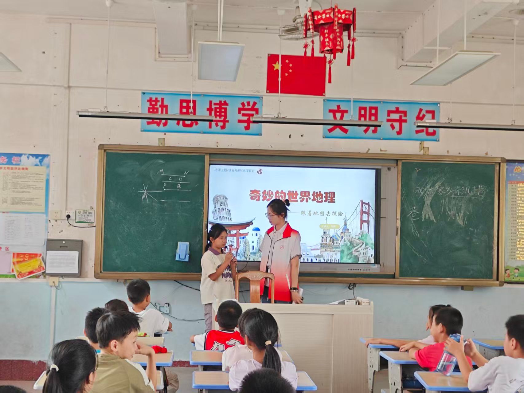 2025年9月19日,韶关学院旅游与地理学院学生第二党支部、义教队、“山里红”党员志愿服务队走进南雄珠玑小学,开展纵向帮扶活动,以地理学科专业优势为支撑,为学生带来一场“奇妙的世界地理”科普课堂,用趣味教学为乡村学子打开认知世界的地理之窗