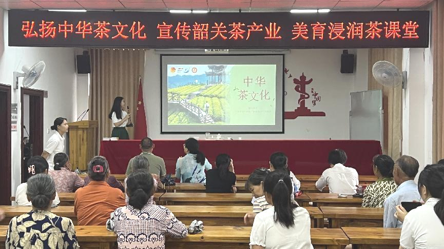 随后,实践团到达珠玑镇灵潭村村委会,为村民们带来了一场别开生面的茶课堂培训,深入浅出地讲解了中华茶文化的历史、韶关茶文化的发展及其代表名茶。实践团成员还为村民们带来了精彩的现场茶艺表演,受到了村民们的一致好评。
