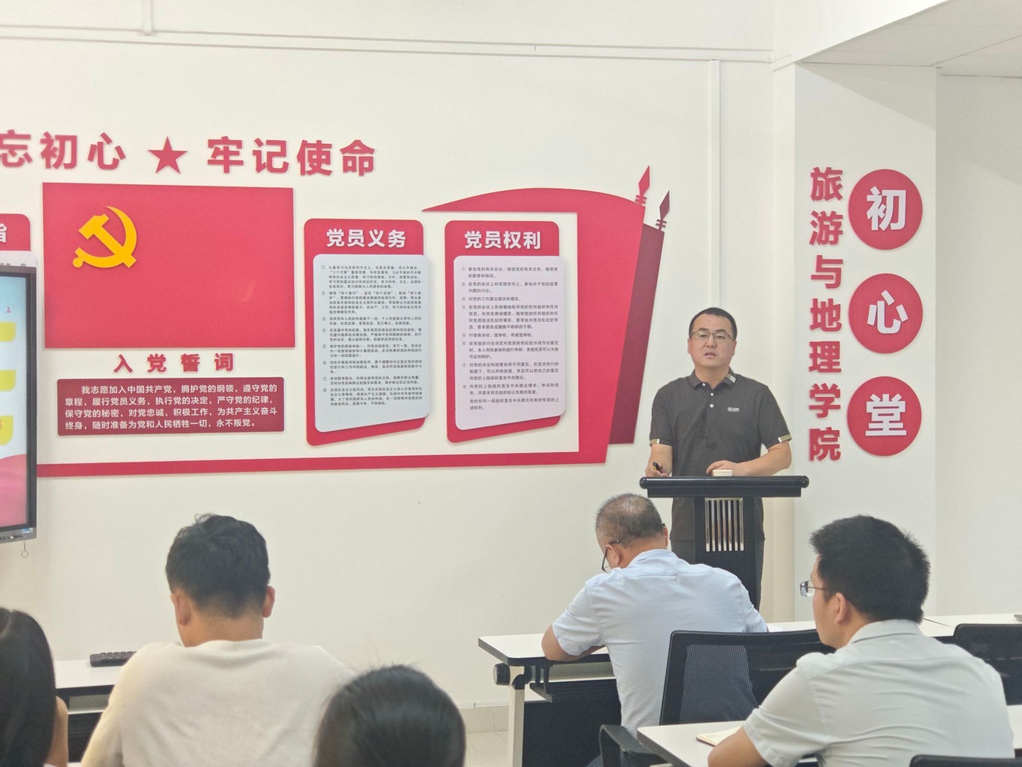 2025年6月4日,旅游与地理学院在弘德楼初心堂举办了一场主题为“从‘八项规定’到‘作风建设永远在路上’——新时代高校作风建设的历史坐标”的专题党课。此次党课由马克思主义学院副院长王海龙主讲,旨在深入贯彻中央八项规定精神,进一步提升党员的思想政治素养。