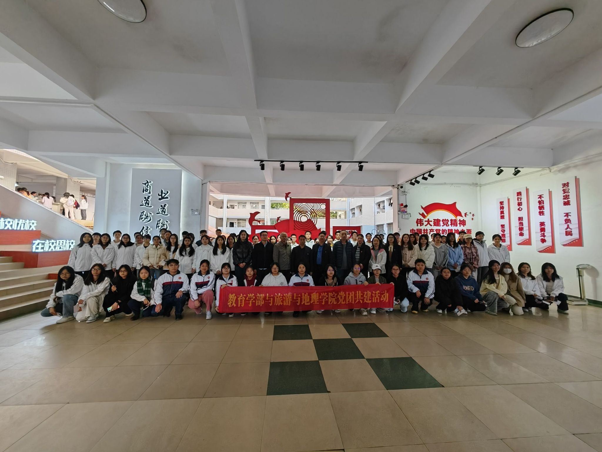 为强化新生职业规划认知与专业发展能力,推动党建引领下的协同育人工作走深走实,11月26日下午,教育学部党支部和旅游与地理学院党委联合共同开展党团共建活动。教育学部党支部书记、教育学部主任兼省级中小学教师发展中心常务副主任周思海,旅游与地理学院党委书记曾裕华、副书记肖著华、学生第二党支部书记王玉珊,及教师党员代表、学生代表参加本次活动。