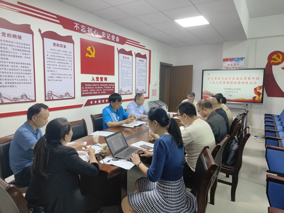深入学习贯彻习近平总书记重要讲话精神,是当前和今后一个时期马克思主义学院的首要政治任务。我院于5月13日下午在学院会议室举办深入学习贯彻习近平总书记在中国人民大学考察时重要讲话精神座谈会。会议由院长严兴文主持,有近20名教师参加。