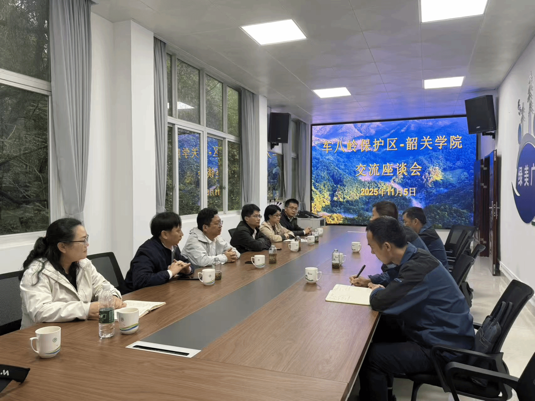 互动研讨现场化作“校地智慧碰撞场”,三方党员以“破解生态保护与发展难题”为靶心,让思想交锋迸发出绿色动能。马克思主义学院党员教师以党建为钥,以习近平生态文明思想为指引,为保护区构建“党建+”长效体系献智献策;旅游与地理学院团队紧扣车八岭资源禀赋,量身定制生态研学线路、自然教育课程等可落地方案,让专业力量扎根实践土壤。保护区工作者带来的濒危物种保护难点、社区协同参与瓶颈等一线痛点,更成为高校教研的“活教材”。这场跨界对话敲定“地方出题、高校破题”的协同机制,在联合科研、人才共育、科普惠民等领域达成共识,为粤北生态屏障建设注入“校地同心”的强劲合力。
