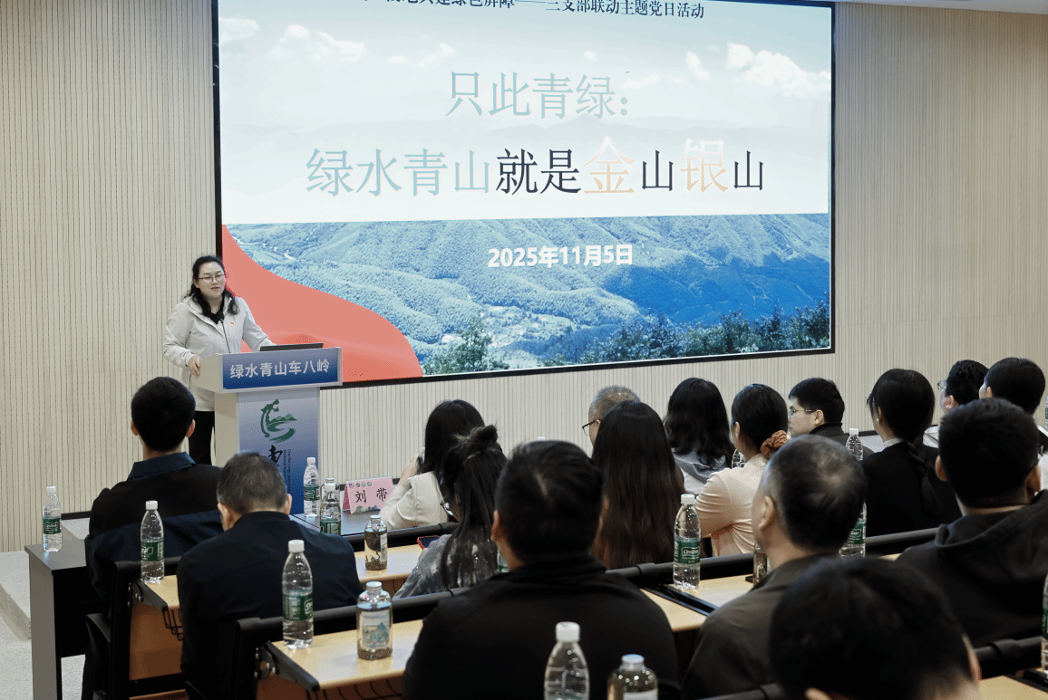 理论共学环节,马克思主义学院教师第二党支部书记席丹丹讲授的专题党课,成为高校理论优势转化为地方发展动能的精彩示范。党课以浙江余村20年蝶变等新时代生态文明建设伟大成就为鲜活案例,深刻阐释“人不负青山,青山定不负人”“绿水青山就是金山银山”的核心要义,更巧妙将车八岭保护区的实践探索升华为印证习近平生态文明思想的“鲜活教材”。这堂扎根地方实际、兼具理论深度与实践温度的党课,既为保护区工作提供了坚实学理支撑,也彰显了高校马克思主义学院在服务地方思想建设、强化价值引领中的独特作用,实现“思政大课堂”与“生态活课堂”同频共振,让生态文明思想在交流互鉴中落地生根、开花结果。