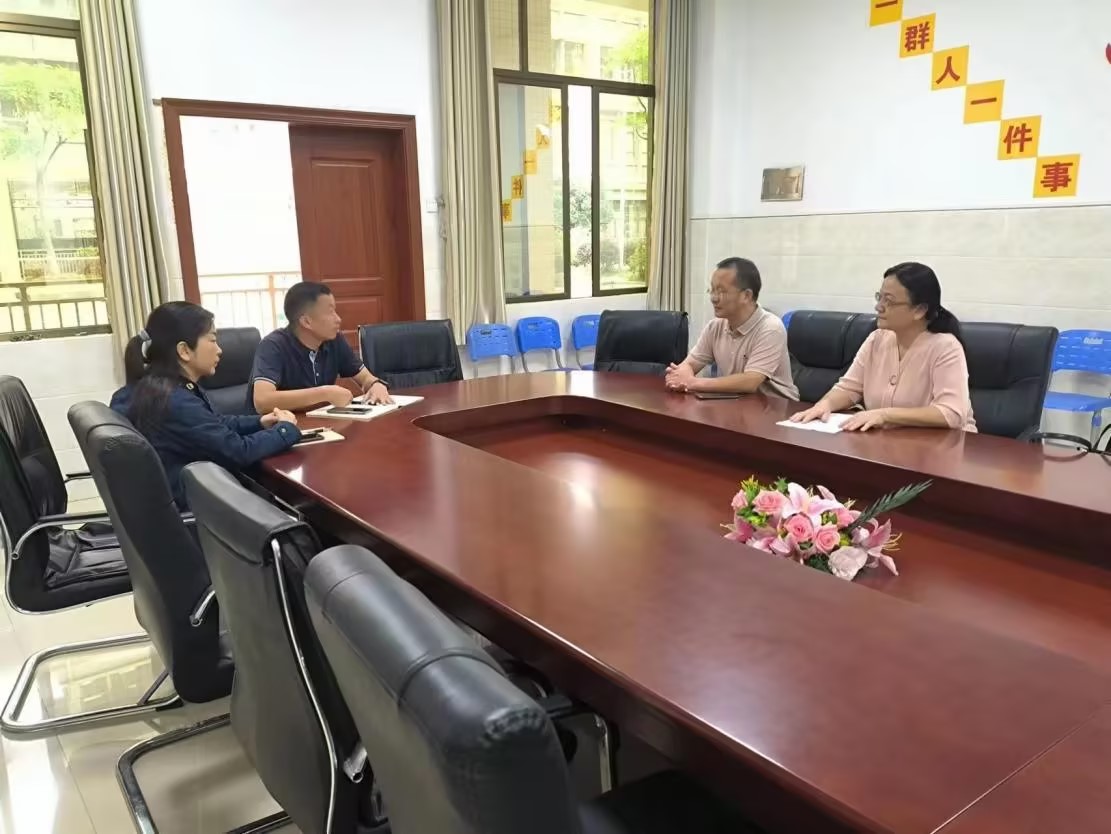 随后,我院老师在韶关实验中学第一会议室与学校相关领导进行了座谈。在座谈中,罗伟斌老师首先对韶关实验中学在实习工作中给予的大力支持表示衷心感谢,并认真倾听了韶实办公室王主任及学科组长许老师对实习生工作情况及韶关实验中学情况的介绍,对进一步加深双方的合作进行了坦率的交流。从韶关实验中学领导反馈的情况来看,我院实习生在工作态度、工作能力及工作成效等方面都得到了韶关实验中学的充分肯定,两位老师也对此深感欣慰。