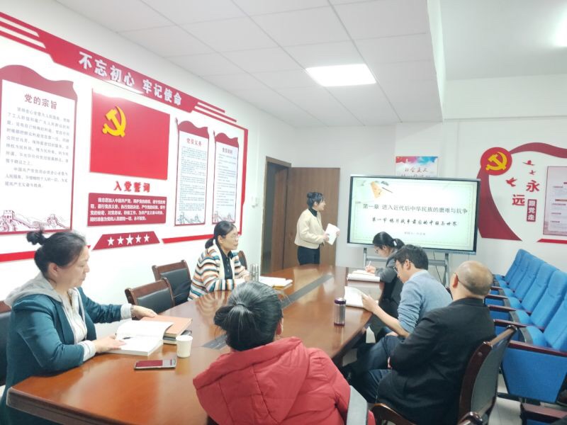 本次备课会主题为第一章第一节《鸦片战争前后的中国与世界》,主备教师汪东瑶以说课的形式,详细分析了在两个历史落差的转换中中国与西方力量的对比,接着深入阐析了鸦片战争后近代中国的社会性质、主要矛盾和历史任务。说课环节结束后,与会老师对章节教学设计和课堂教学实效进行点评,并结合个人经验进行了探讨。刘军、罗韬、杨红英、王俊杰等老师就本节课的教学重难点以及如何处理好“史”与“论”的关系问题充分发表了自己的看法;罗莉与何正付老师则就教学内容的详略处理提出了意见和建议;吕莹、张文佳老师也分别对如何开展好主体性教学与各位老师进行了交流。