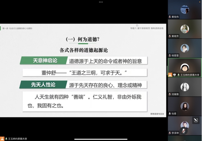 为进一步提升青年教师的专业素养,夯实青年教师教学基本功,促进青年教师的发展与成长,2022年11月15日下午,马克思主义学院组织青年教师开展线上教学集体研讨活动。此次活动由王玉婷、池媛茜和赖怡君三位老师主讲。