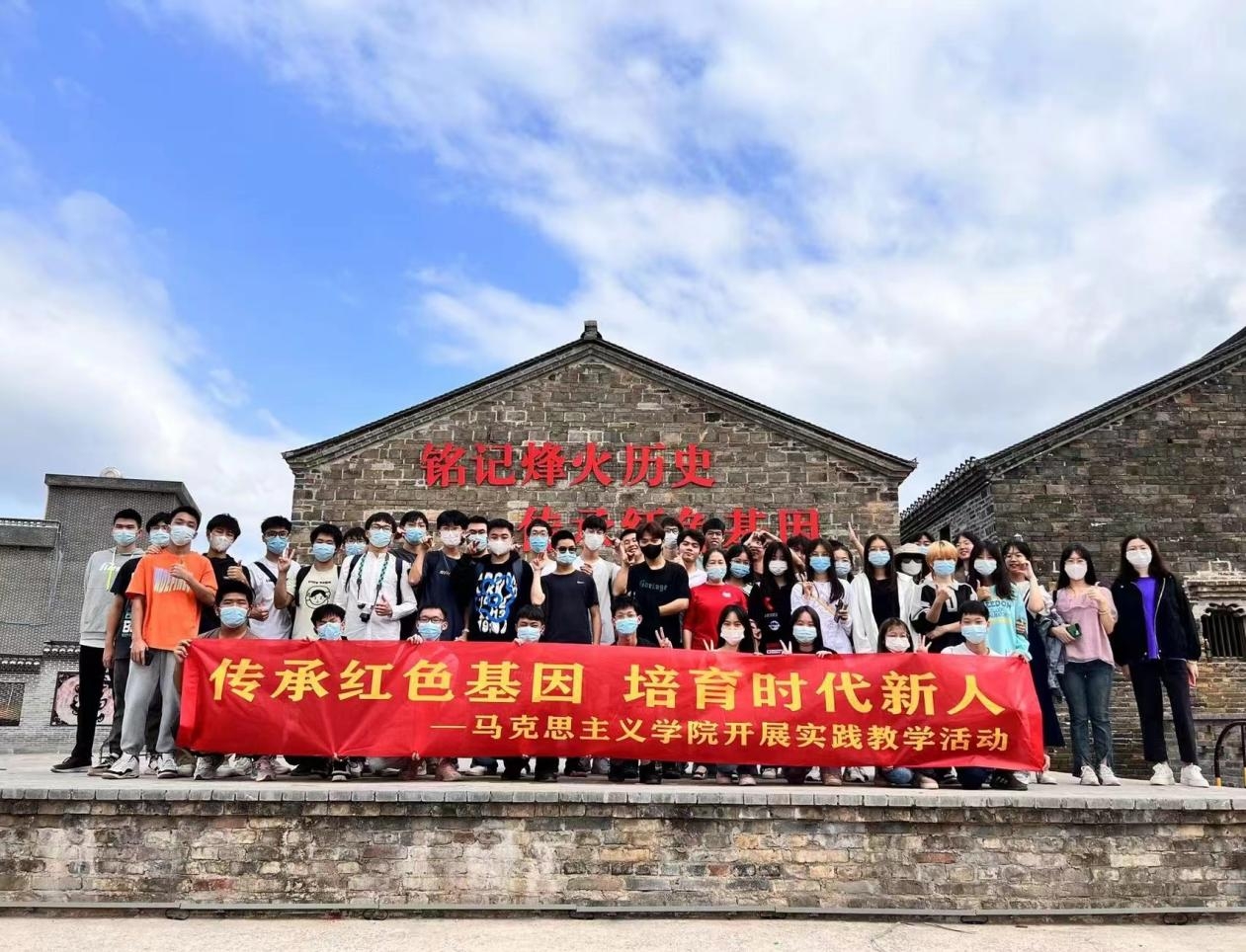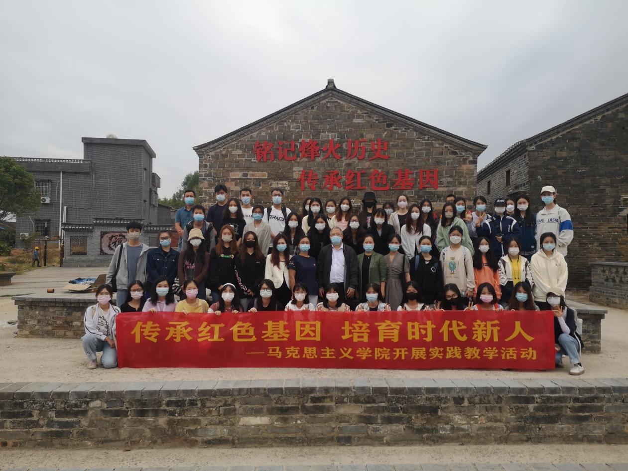 为更好地传承红色基因,弘扬红色文化,赓续红色血脉,促进思政课理论与实践相结合,近日,马克思主义学院组织《习近平新时代中国特色社会主义思想概论》课学生代表313人,前往韶关市华南教育历史研学大村基地开展以“传承红色基因,培育时代新人”为主题实践教学活动,此次活动由院长严兴文和副院长薛晓芳带队,七位任课教师积极参与并指导学生开展实践教学活动。