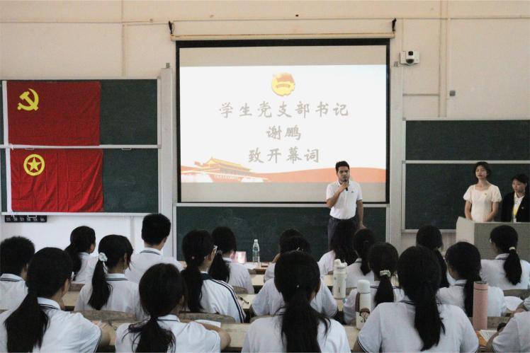 全体成员在奏唱中国共产主义青年团团歌中拉开了活动的帷幕。随后,学生党支部书记谢鹏发表讲话,强调团员青年应始终坚持以马克思主义中国化时代化最新成果为指导,通过多种形式将所学理论与实践相结合,不断提高自己的理论水平、创新能力、组织协调能力等,努力成长为有理想、有本领、有担当的青年马克思主义者。在团委副书记宣读校团委批复后,上期优秀营员代表李妍讲话,分享了自己作为优秀营员的所学所感,并带领全体营员进行宣誓。在小组展示环节,七个小组分别进行了自我介绍以及口号展示。