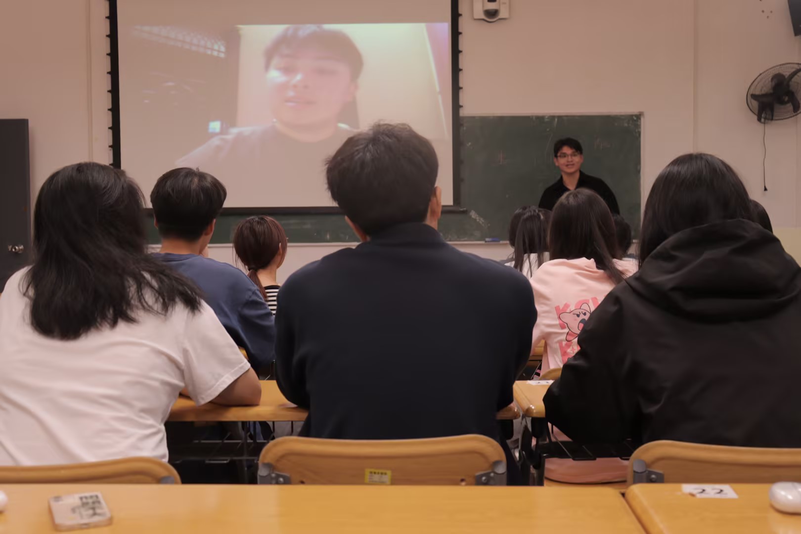 与此同时,另一位支教志愿者米梓豪同学通过线上视频的方式,与同学们分享了他在新疆的支教生活。视频中,米梓豪同学带领大家走进当地的教学现场,深情讲述了他的支教故事,并特别强调了坚守支教初心与使命的重要性,展现了他作为一名支教者的深厚责任感与崇高使命感。