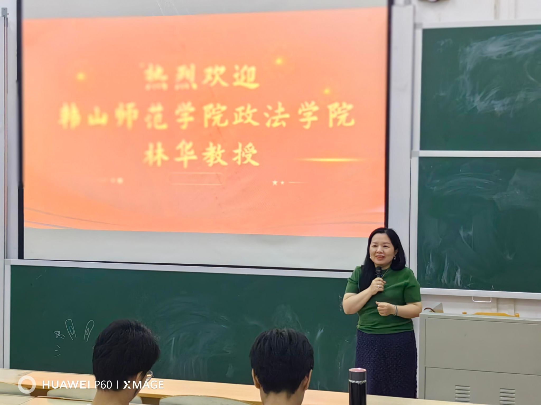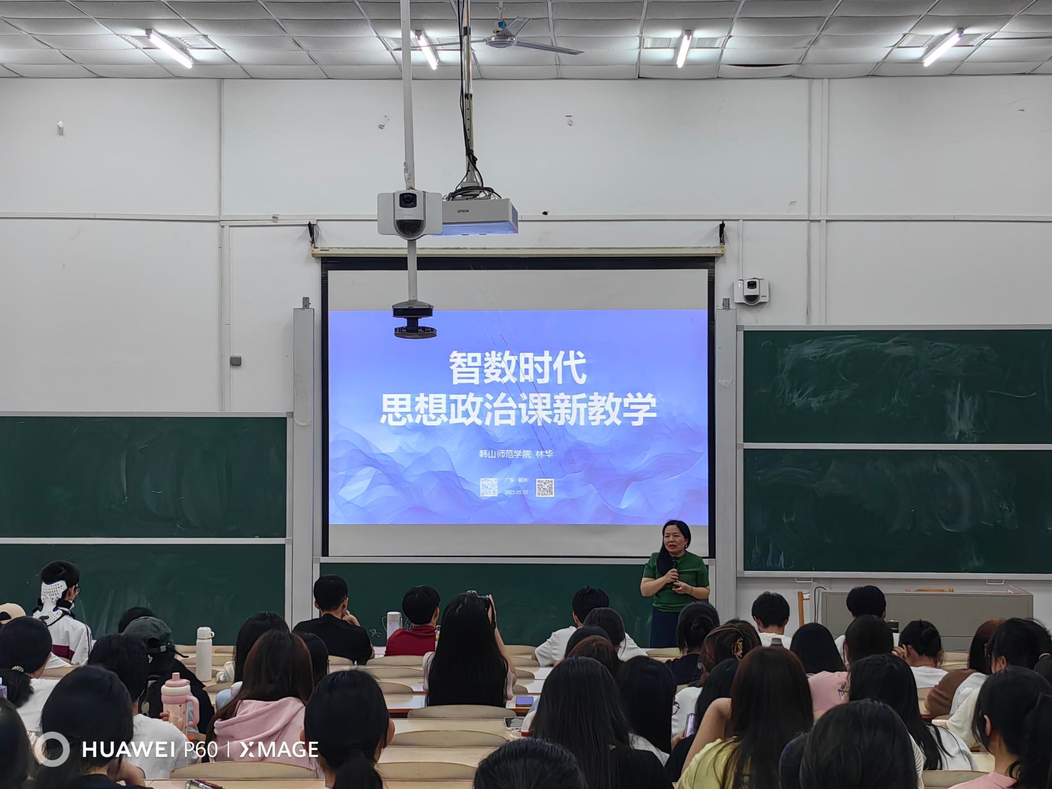 2025年5月7日晚七点半,由韶关学院马克思主义学院主办的"智数时代的思想政治课新教学"专题讲座在南二教学楼D402举行。教育信息化专家林华教授为现场200余名师生带来了一场关于人工智能时代思政教育创新的精彩报告。讲座由我院王海龙副院长主持,思想政治教育系主任席丹丹、团委书记吴青丽参加此次讲座。