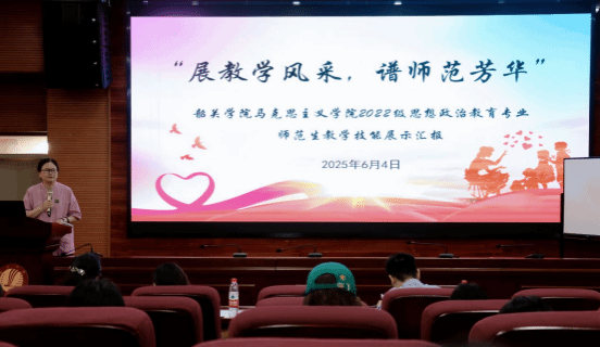 2025年6月4日,马克思主义学院成功举办2022级思想政治教育专业师范生教学技能展示汇报活动,旨在集中展示师范生教学技能与实训课成果。韶关市浈江区教师发展中心主任何兰芳、韶关市第五中学政治科教师聂少芳、马克思主义学院副院长陈悦、思想政治教育系主任席丹丹等评委莅临现场,学院全体思想政治教育专业学生参加。参赛的七名选手以创新教学形式,将中华优秀传统文化与时代热点深度融入思政课堂,充分展现青年师范生的青春活力与专业风采。