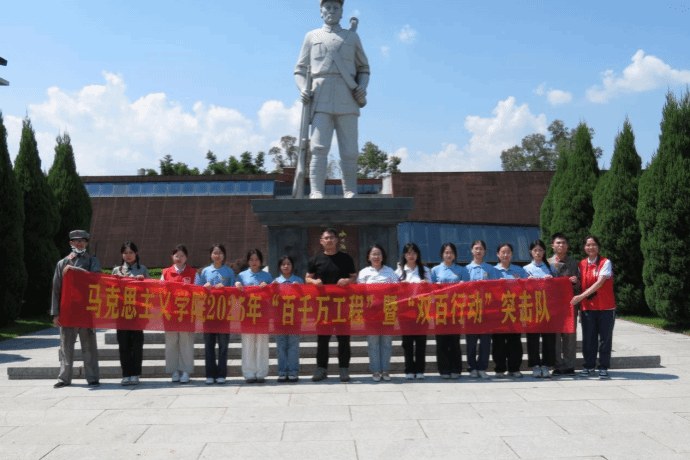 为深入贯彻落实广东省“百县千镇万村高质量发展工程”(“百千万工程”)和“双百行动”部署要求,7月4日,马克思主义学院“红韵先锋”军事研学特战队在学院党委副书记李灵玲、辅导员吴青丽及教师黄锐伟带领下,赴南雄开展暑期“三下乡”社会实践。团队通过红军学校国防课堂、水口战役陈列馆研学、博物馆红色文化学习三位一体的沉浸式教育,将红色基因传承与“百千万工程”“双百行动”紧密结合,助力南雄红色文化资源挖掘与乡村振兴发展。
