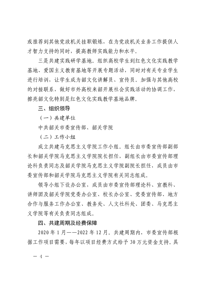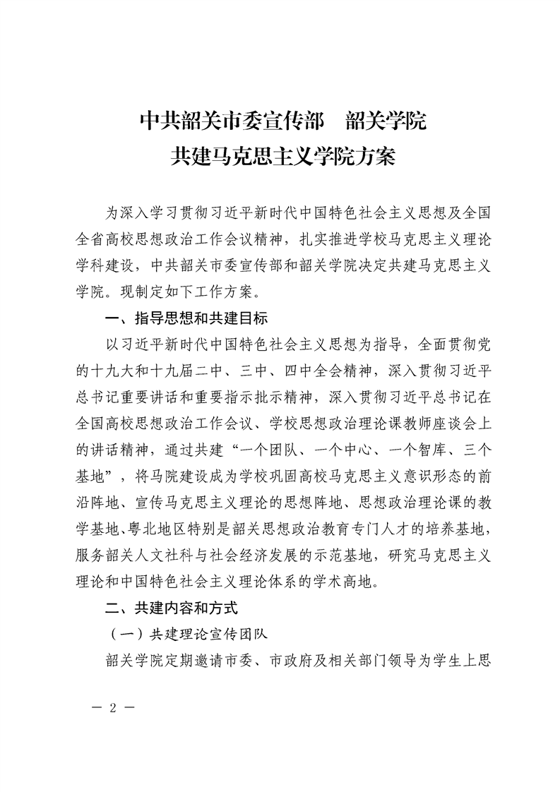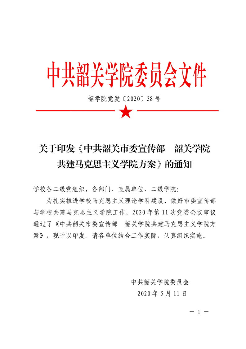 关于印发《中共韶关市委宣传部 韶关学院共建马克思主义学院方案》的通知