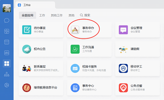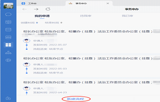 一、打开企业微信工作台,点击事务申办和新建流程