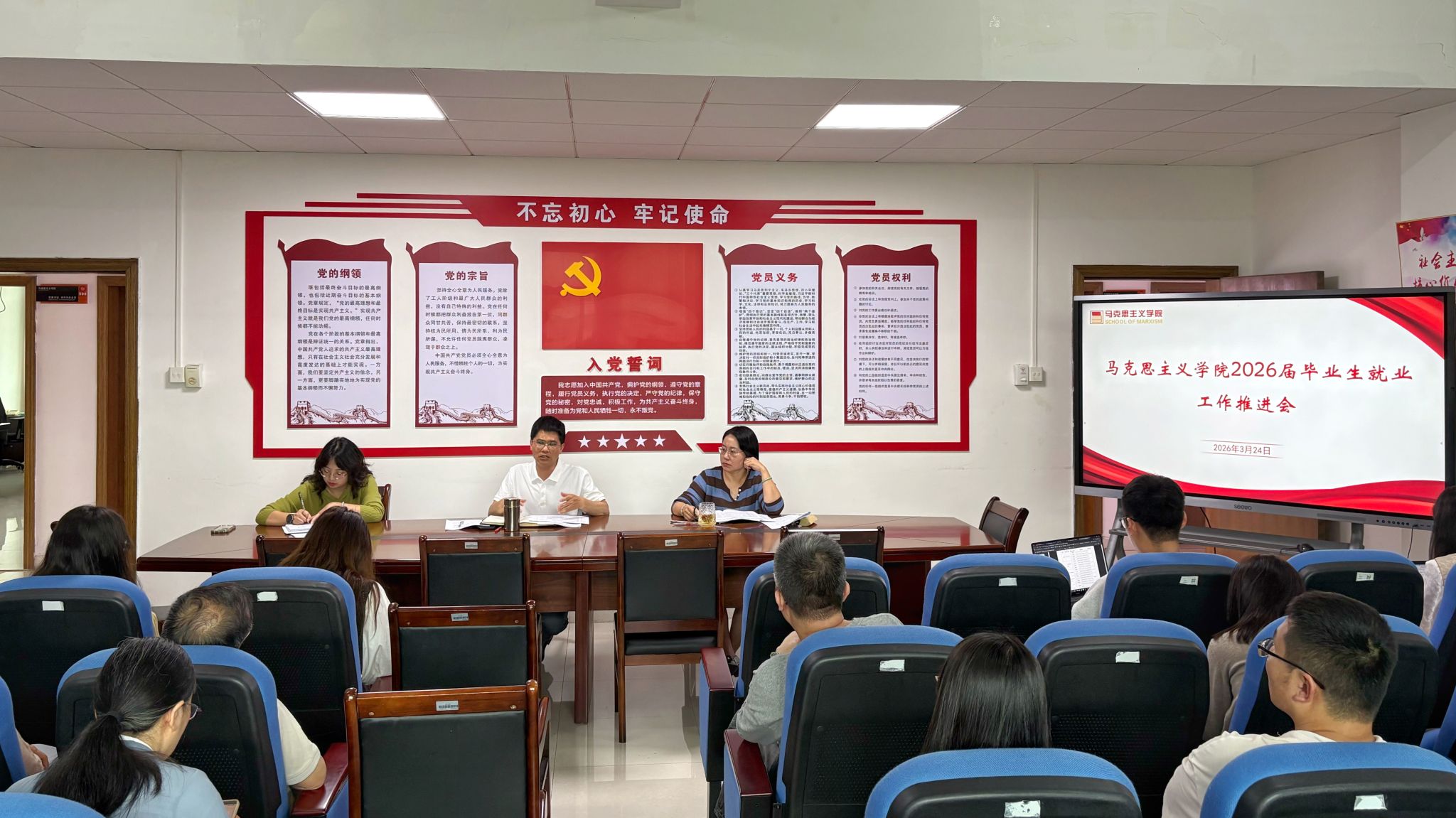 3月24日,马克思主义学院在旅港楼521会议室召开2026届毕业生就业工作推进会。党委书记何国举,党委副书记李灵玲,毕业班辅导员、班主任及就业帮扶导师参加会议。