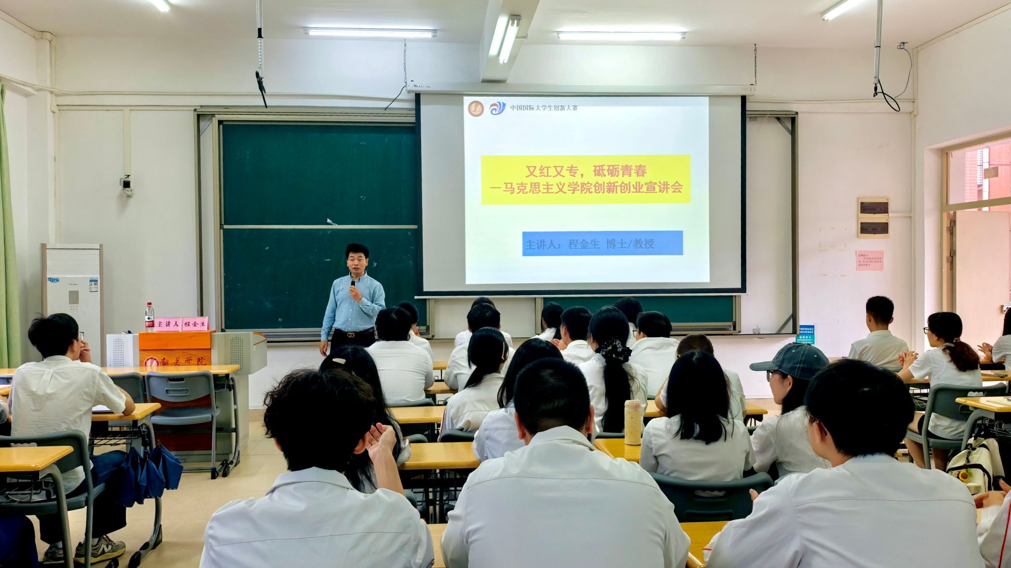 为培养学生创新精神和创业意识,拓宽学生创新思维,提高创新创业能力,赋能学校高水平应用创业型大学建设。4月22日下午,学院邀请韶关学院创新创业学院院长程金生教授于知礼楼407教室开展学生创新创业专题讲座。我院2025级全体学生参加,讲座由马克思主义学院副院长刘带主持。