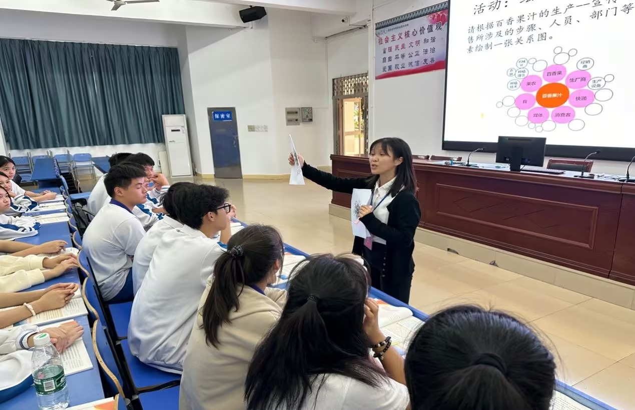 当日下午,全体学员前往韶关市中等职业技术学校参加了“中职学校思政课观摩研讨工作坊”。来自该学校的易倩云老师为全体学员展示了一节以“世界是普遍联系的”为主题的思政课。在课堂结束后的讨论阶段,易老师本人对其备课和教学心得进行了分享,充分阐发了她的“以学生为导向”的备课和教学思路,并且分享了这节课幕后的诸多故事。学员们也对易老师的授课发表了精彩的点评,他们都对其教学设计给予了高度的评价,对这节课的教学效果给予了充分的肯定。