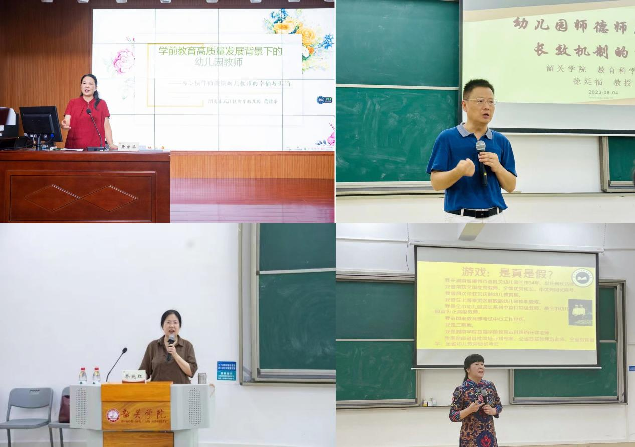 本次培训班邀请了上海交通大学马克思主义学院乔兆红教授、韶关学院教育科学学院徐廷福教授、湖南郴州市教科院正高级教师彭武、韶关市新华幼儿园特级教师黄建荣园长为学员们授课。通过对“习近平总书记关于教育(师德师风)重要论述解读”、“幼儿园师德师风建设长效机制的构建”、“幼儿园师德师风建设现状及对策探讨”、“学前教育高质量发展背景下的幼儿教师”等专题学习,学员们掌握新时代幼儿园师德师风理论,这对提升参训学员的理论水平运用能力及教学实践能力有很大帮助。