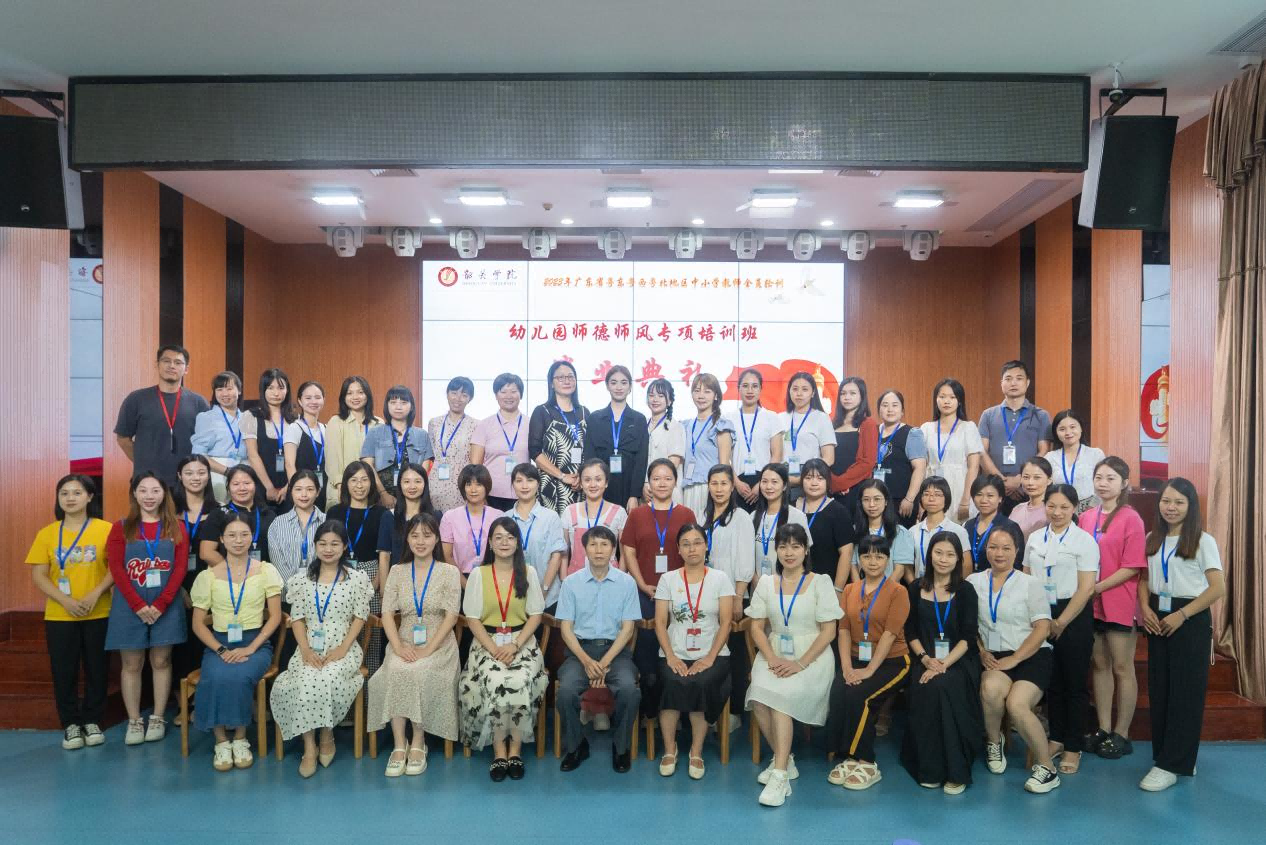 2023年8月2日-8月6日,由广东省教育厅主办、韶关学院马克思主义学院承办的“2023年广东省幼儿园师德师风专项培训”于韶关学院省级中小学教师发展中心顺利完成了为期5天的培训工作。来自广东省各地幼儿园骨干教师代表共50位学员参加了本次培训。韶关学院马克思主义学院副院长杨华山担任本次项目负责人,首席专家周小玲老师、项目秘书黄锐伟老师和项目班主任黄艳芳老师参与本次培训的相关工作。
