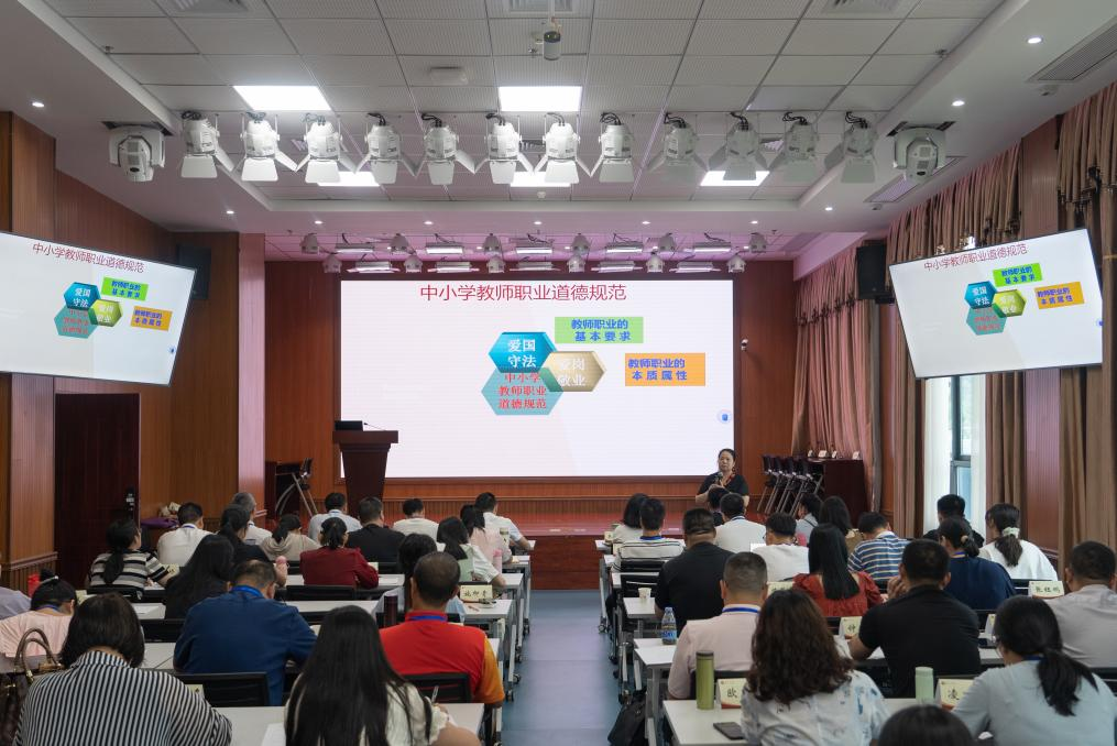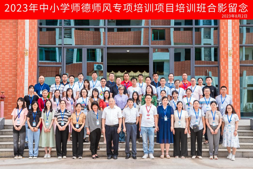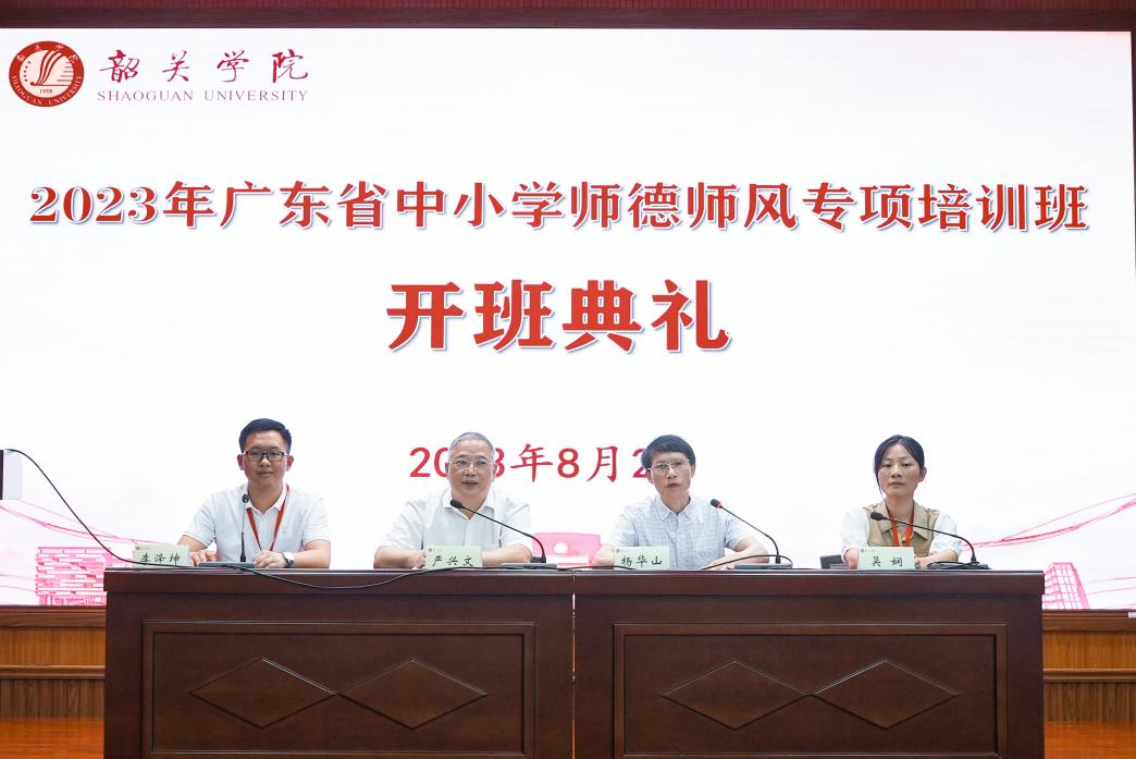 8月2日下午,由广东省教育厅主办,韶关学院马克思主义学院承办的广东省2023年中小学师德师风专项培训班在韶关学院省级中小学教师发展中心智慧三室正式开班。韶关学院马克思主义学院五级专职组织员兼项目负责人严兴文教授、韶关学院马克思主义学院副院长兼项目首席专家杨华山教授、项目秘书李泽坤老师、班主任吴娴老师以及来自全省50位中小学骨干教师参加了本次开班仪式。