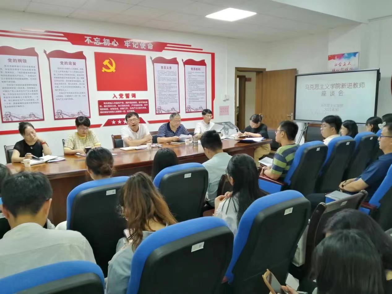 8月30日下午,马克思主义学院组织召开新进教师座谈会。学院领导班子及新入职教师参加会议,会议由书记周泽雄主持。
