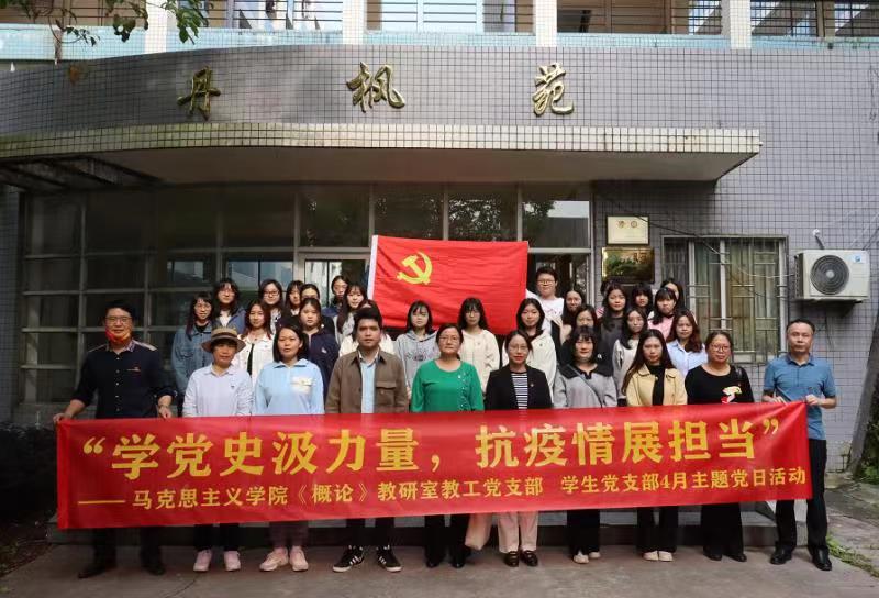 为进一步推动党建进社区工作的开展,促进学院“三全育人”制度落实落细,马克思主义学院《概论》教研室教工党支部联合学生党支部,于4月20日下午在丹枫苑社区开展了“学党史汲力量、抗疫情展担当”主题党日活动,两个支部的全体党员参与了此次活动。