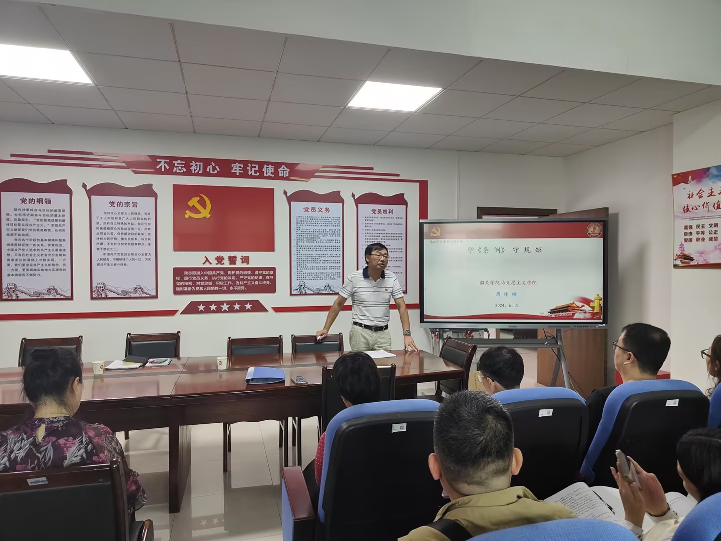 为教育引导党员干部知敬畏、存戒惧、守底线,做到忠诚干净担当,切实推动党纪学习教育走深走实,6月5日下午,马克思主义学院开展党纪学习教育专题党课,由学院党委书记周泽雄主讲,全体党员干部聆听了党课。