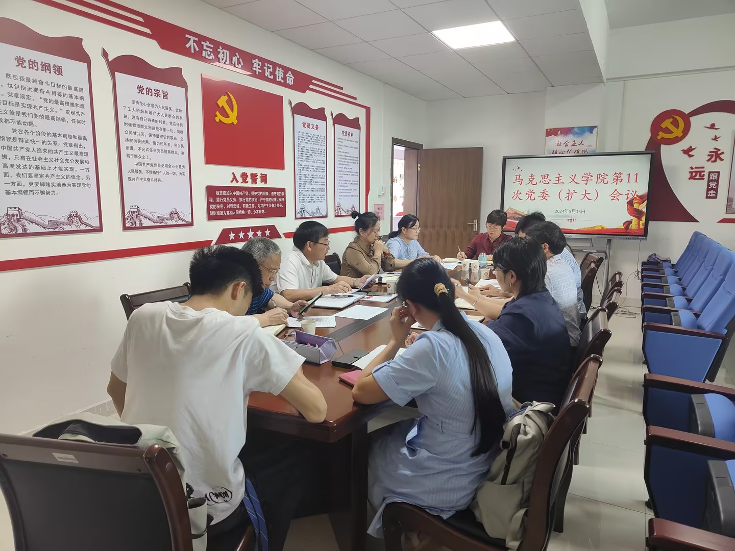 5月13日上午,马克思主义学院召开党委(扩大)会议,专题传达学习习近平总书记对学校思政课建设作出的重要指示精神,会议由党委书记周泽雄主持,学院班子成员、党委委员、专兼职组织员、各党支部书记参加了会议。