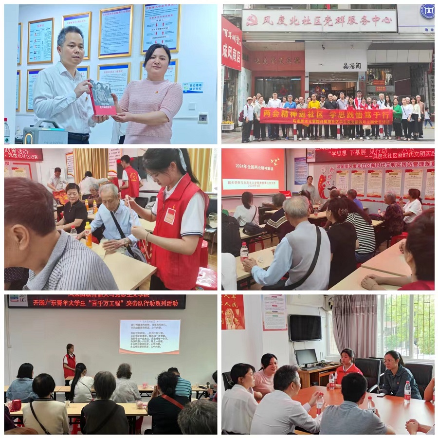 今年4月,马克思主义学院丹枫苑社区学生党支部联合教师第二党支部走进风采街区风度北、风度中、老东门、环园路四个社区,开展“两会精神进社区 学思践悟笃于行”志愿服务活动。