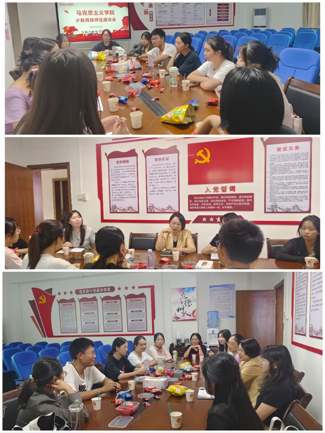 10月15日下午,马克思主义学院召开了少数民族师生代表座谈会,来自苗族、壮族、黎族、蒙古族等不同民族的师生齐聚一堂,大家畅所欲言,气氛融洽而热烈。