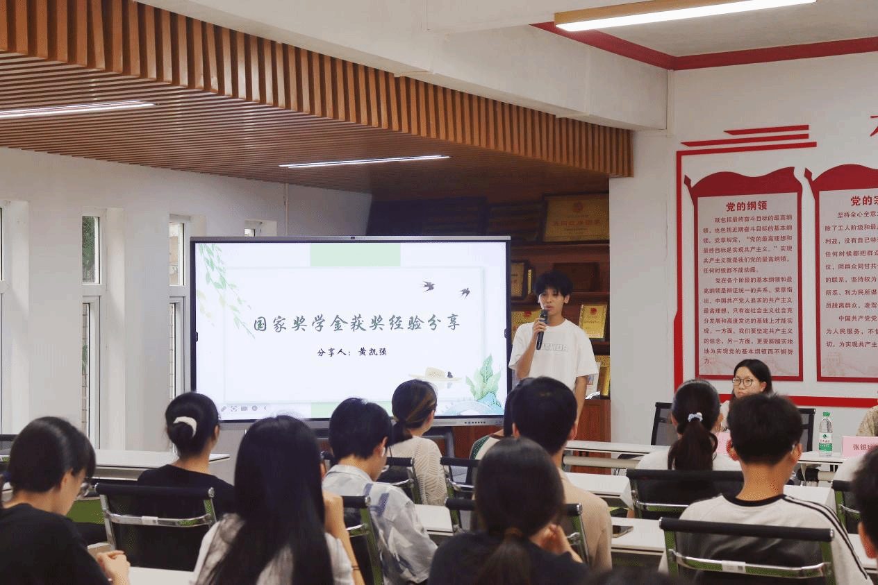 2022级黄凯强同学结合科研、暑期社会实践经历,生动讲述了在青春逐梦中践行“拼搏奋斗”的体会,其分享经验也深刻体现了国家奖助政策对个人成长成才的有力支持和保障,让在场学子深切感受到榜样力量的具象化呈现。“当国家励志奖学金为我解决学费之忧时,我更深刻理解了“资助育人”的意义。”2022级国家励志奖学金获得者张银玲分享了如何在专业学习中构建知识体系,在红色研学中厚植家国情怀;2023级国家励志奖学金获得者梁静同学则以“时间管理四象限法”为切入点,详细讲解了如何平衡学业与学生工作;在45分钟的分享环节后,互动提问环节将现场氛围推向高潮。学生们围绕科研、学习、生活进行提问,让大家对资助政策有了更清晰的认知,也找到了学业提升的具体路径。