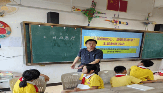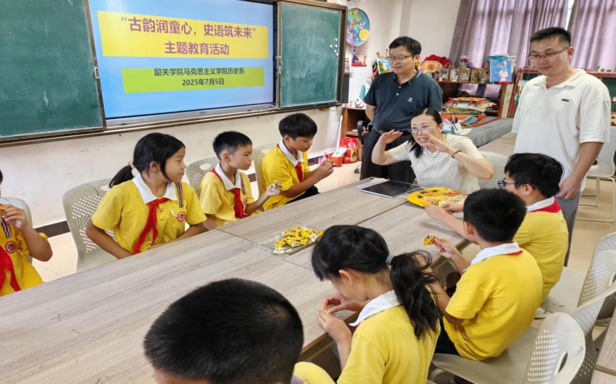 为持续深化对新丰县“三所学校”的结对帮扶工作,2025年7月5日,韶关学院马克思主义学院历史学系教师团队在系主任侯锐博士的带领下,走进新丰县沙田镇中心小学,精心开展“古韵润童心・史语筑未来”主题教育活动,为山区留守儿童献上了一场别开生面的历史文化盛宴。