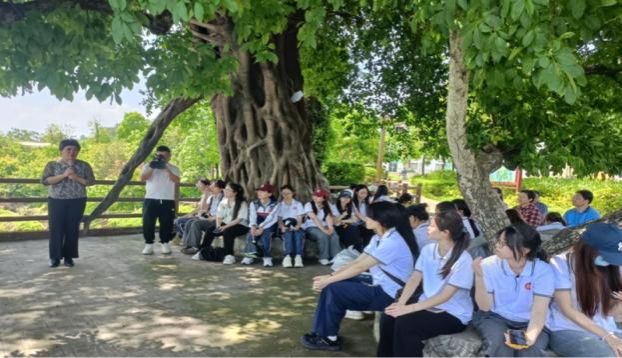 实践教学环节亮点纷呈。灵潭村党总支书记黄建忠以钟蛟蟠烈士事迹为引,开展“传承红色基因,锻造美丽乡村”现场讲解,带领师生回溯灵潭村的红色历史与奋斗征程,先辈们的奉献精神与乡村发展的艰辛历程深深触动着每一个人。珠玑镇镇长廖春花以“灵潭村:脱贫之后,向美而行”为主题,分享脱贫后的发展成果与规划,描绘出乡村持续发展的美好蓝图。马克思主义学院教师杨雯雯在“星火燎原”革命烈士雕塑前,带来“铸魂·赋能·共生:红色基因激活乡村振兴内生动力的灵潭实践”课程,从理论层面剖析红色基因如何转化为乡村振兴的强劲动力。教师张阅以“双百行动引擎驱动乡村振兴的灵潭实践”为题,引导学生将课堂理论与地方实际相结合,深入思考国家战略在基层的实践路径。