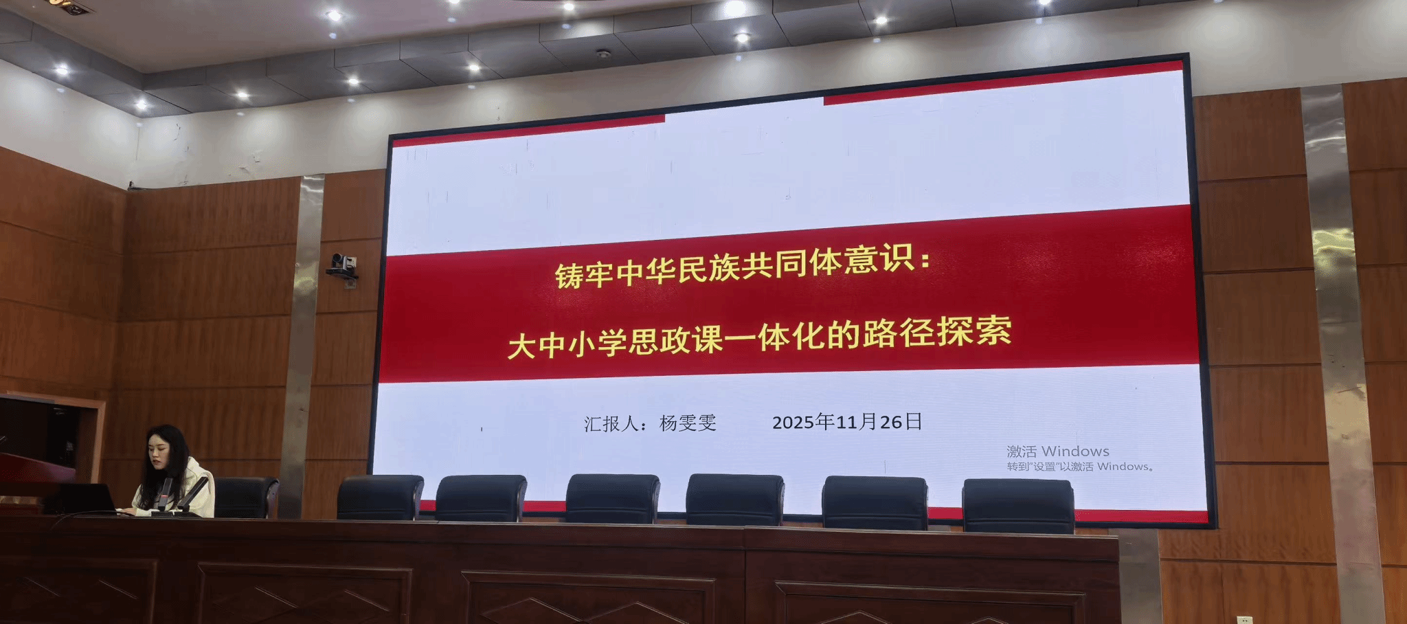 在11月26日下午的专题讲座环节,杨雯雯老师以《铸牢中华民族共同体意识:大中小学思政课一体化的路径探索》为题,结合思政教育教学规律与 不同 学段特点,深入剖析大中小学思政课一体化建设的核心逻辑,分享 了 思政课学段衔接的实践思路与方法,为在场教师深化思政课教学改革、推动民族团结教育精准落地提供了有益借鉴。