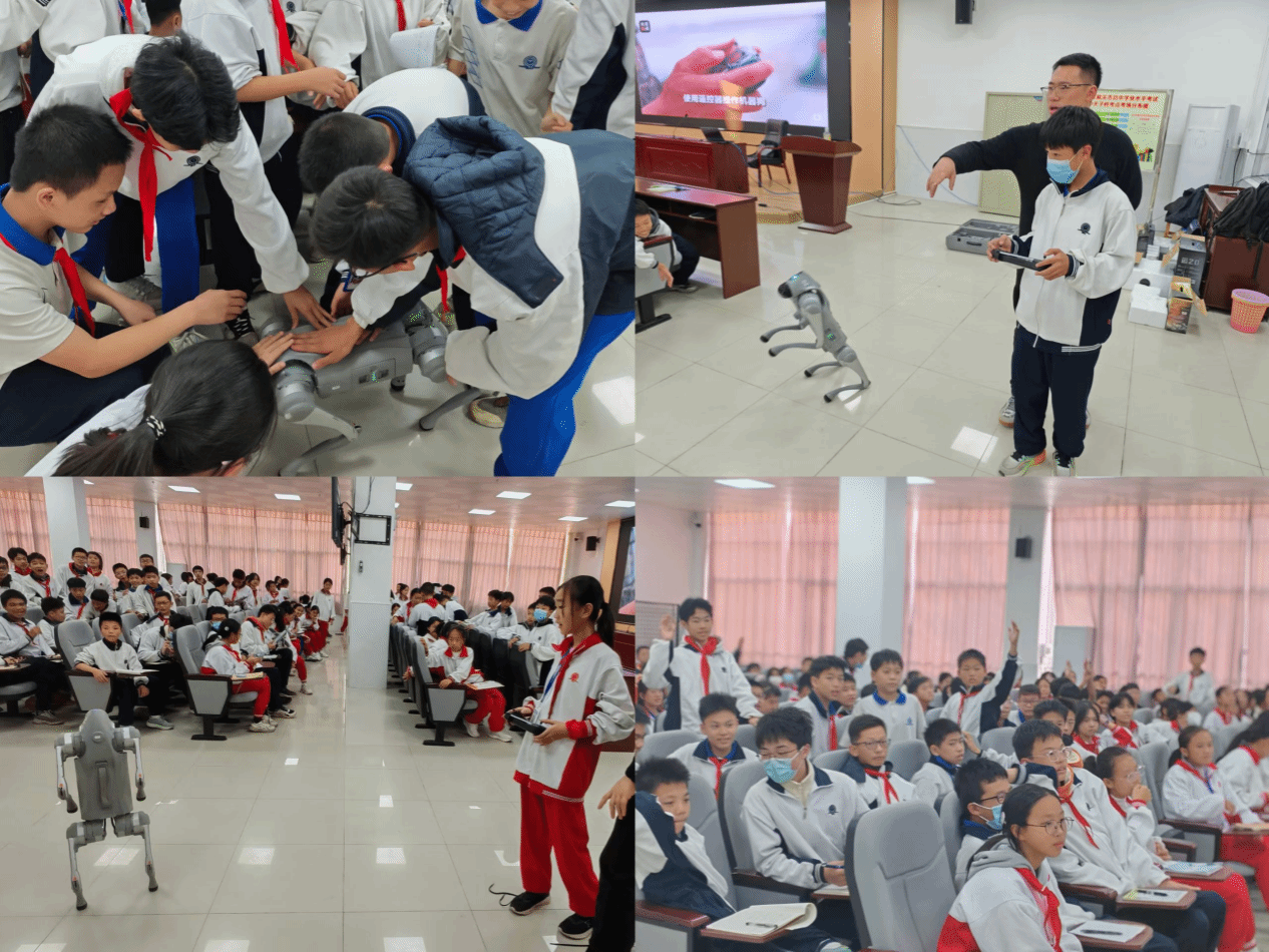 在国防科技讲解环节,黄锐伟老师结合现代军事发展趋势,融合历史与现实、传统与科技,聚焦我国空中国防力量的跨越式发展成果。他现场展示预警指挥机、歼-16战斗机等先进装备模型,结合2024年珠海航展的热点亮点,生动解读五代机“高隐身性、超音速巡航、超视距打击、高机动性”的核心优势,用直观的实物演示与专业的理论解析,让在场师生近距离感受国防科技的硬核实力。现场设置的互动环节更是点燃了全场热情,智能机器狗的灵活演示、军事装备模型的细致观摩,让同学们在动手体验中激发对国防科技的探索兴趣,深刻理解“科技兴军”的战略意义。现场师生认真聆听、积极互动,不时响起热烈掌声,在浓厚的学习氛围中,爱国情、强军志在每个人心中悄然扎根。