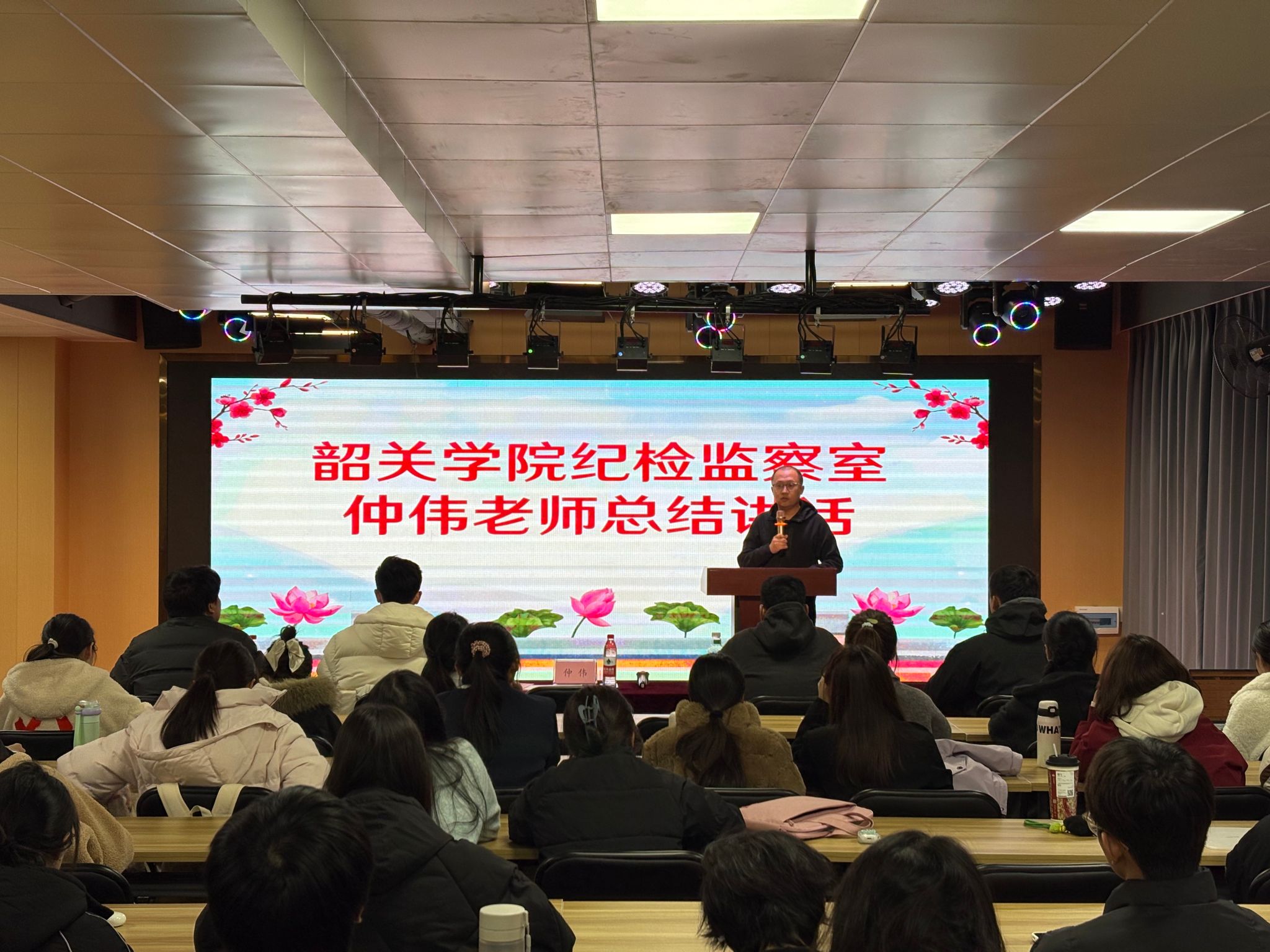 仲伟老师在总结点评中指出,本次比赛聚焦韶关姓氏家风与廉洁文化,主题鲜明、组织有序,充分展现了青年学子的蓬勃朝气与精神风貌,并针对演讲中存在的一些问题提出了中肯的建议。他鼓励师生们以此次活动为契机,从本地优秀家风家训中汲取廉洁养分,筑牢廉洁自律思想防线,把廉洁文化融入日常学习和工作中。