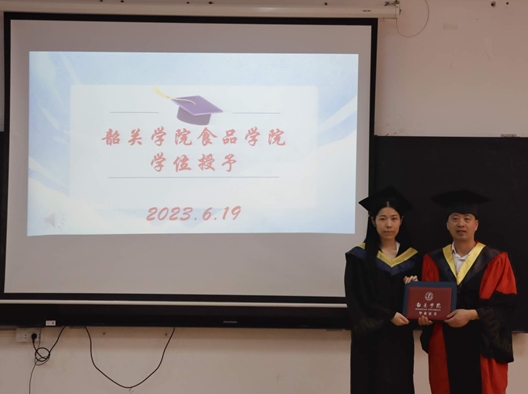 随后,学位授予仪式正式开始。食品学院学位委员会成员朱建华、肖仔君、敬思群、张霞、康林芝身着导师服,先后为毕业生拨穗并颁发学士学位证书。