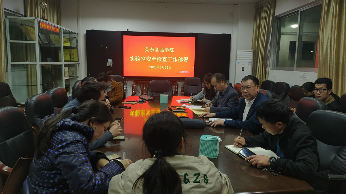3月25日晚,英东食品学院在学院会议室召开实验室安全检查工作部署会议,学院党委书记谷永芹、副院长(主持工作)朱建华、副院长张霞、实验室管理人员及各专业研究室负责人参加会议。