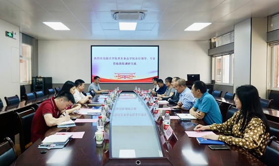 在华南农业大学食品学院,我院一行受到食品学院党委书记魏剑波、副院长钟青萍等领导的热情接待。会上,魏剑波书记对韶关学院英东食品学院一行的到来表示热烈欢迎,钟青萍副院长介绍了华南农业大学食品学院的办学情况,从师资队伍建设、教学成果、学生质量、科学研究四个方面介绍学院的建设成效。朱建华副院长对华南农业大学食品学院一直以来对我院给予的帮助与支持表示衷心的感谢,并汇报了英东食品学院近年来在学科课程建设、人才培养和科学研究等方面取得的成果。随后,两院就行政管理、学科建设、专业及课程建设、实验室安全管理、人才培养及成效以及党建及学生工作等关注的问题,进行了具体的交流与研讨。根据本次调研交流提出的问题,双方之后将开展落实具体的合作帮扶计划,进一步提升帮扶水平。