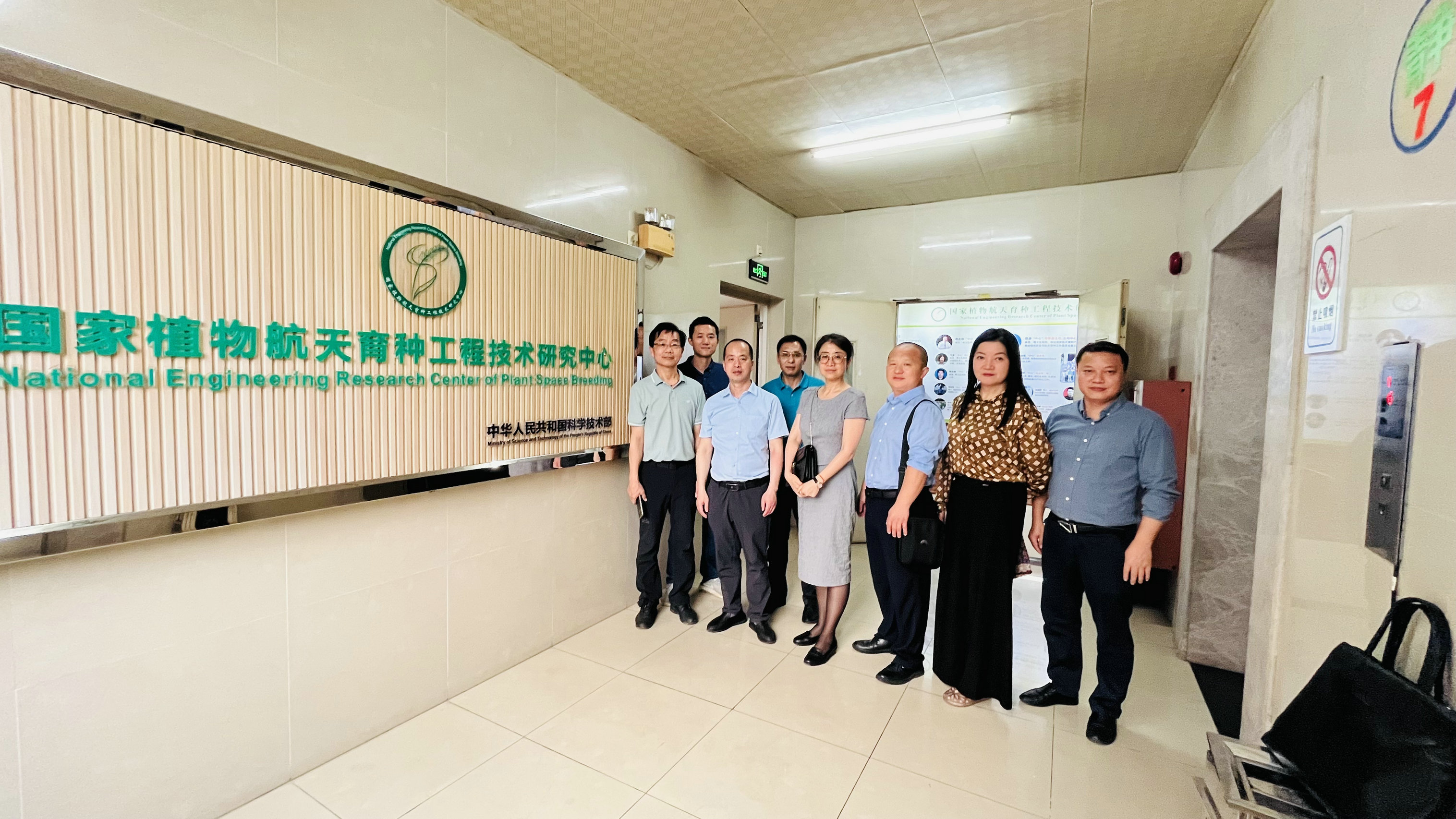 在国家植物航天育种工程技术研究中心,双方就实验室建设、科研合作等方面进行了探讨。朱建华一行参观了国家植物航天育种工程技术研究中心的成果展示和实验室。