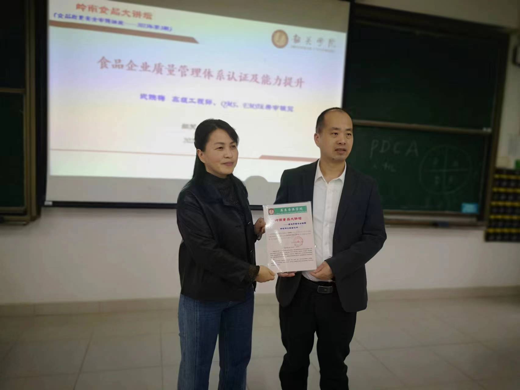 为深化推进粤北现代食品产业学院内涵建设,提升食品类高水平应用型人才培养质量,英东食品学院以新创设立的“岭南食品大讲坛”为平台,践行“校政企协”多体协同育人和开放办学理念,紧密对接产业链,引入企业资源探索开展高标准的专业建设和课程建设,全面提升食品质量与安全专业本科生培养质量。4月17日、4月24日、4月26日先后分别邀请东阳光药业有限公司质量总监蔡波先生、韶关市质量协会主任武映梅女士、韶关科源水质检测公司冯燕女士做客岭南食品大讲坛。