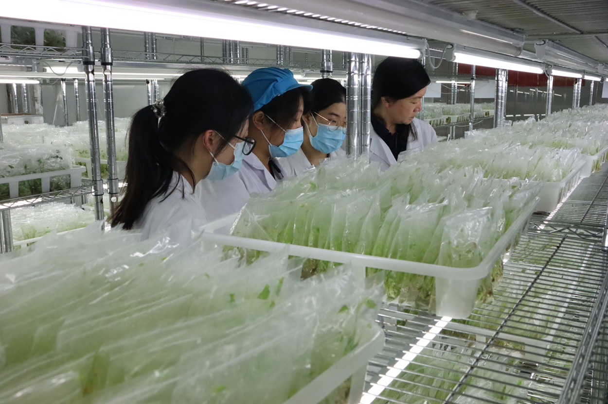 在乐昌市昌农农业投资有限公司探访过程中,团队成员向技术员陈玉梅了解火山粉葛种苗的生长状况、生长环境。