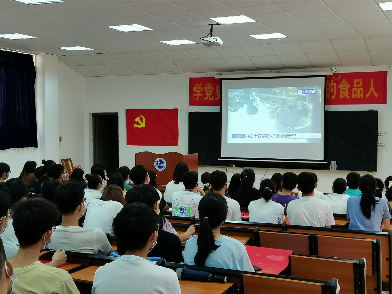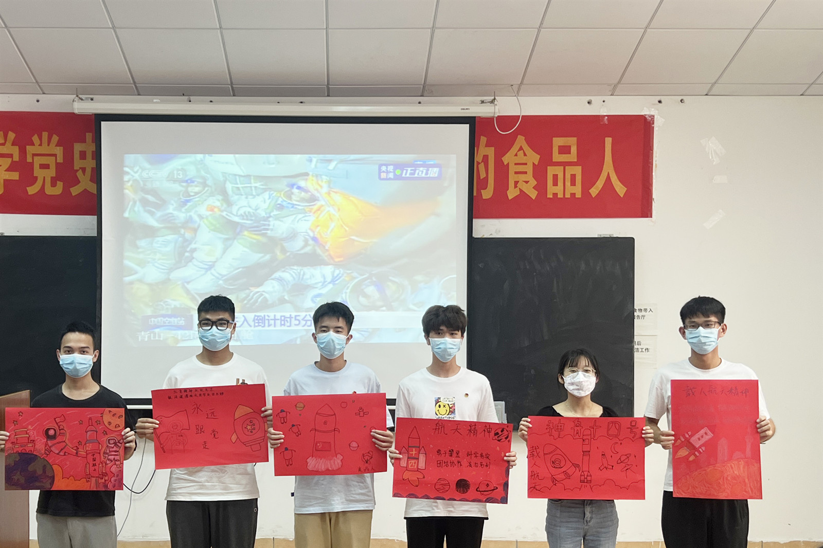 最后,大家集体观看神舟十四号载人飞船发射直播,切身体会了到中国航天工程取得的伟大成就,自豪感和骄傲感油然而生,并通过手绘海报给飞船送祝福。