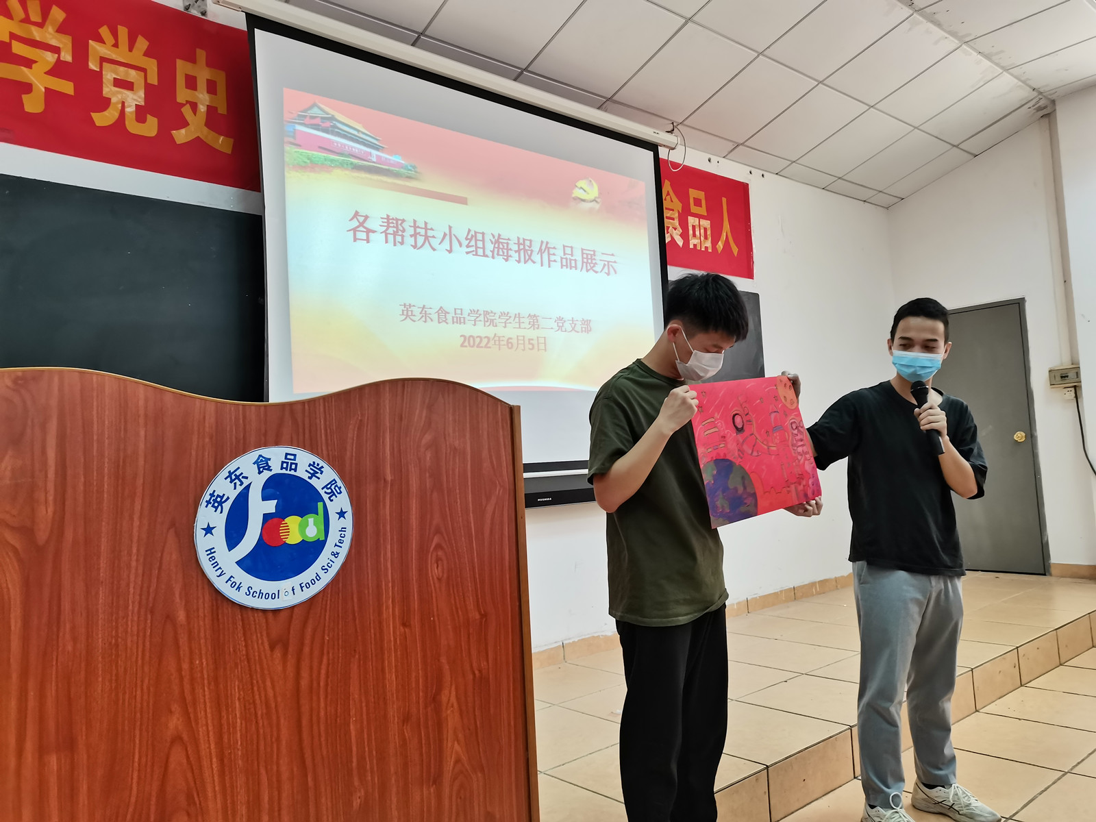 根据党支部的联系帮扶制度,每一位党员同志与指定发展对象、入党积极分子和入党申请人结对成为一支帮扶小队,成员相互认识和熟悉后,开始围绕活动主题共同绘制海报,然后依次上台进行介绍和展示。